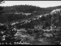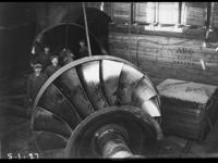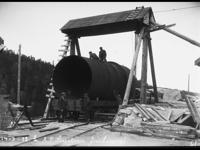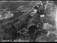 Bygging av den første rørgaten ved "Bøilefoss kraftstation" 1912. Rørdeler og turbinhjul (nede t.v.)