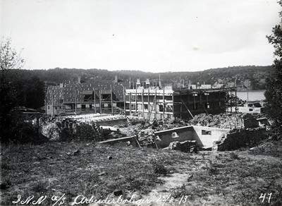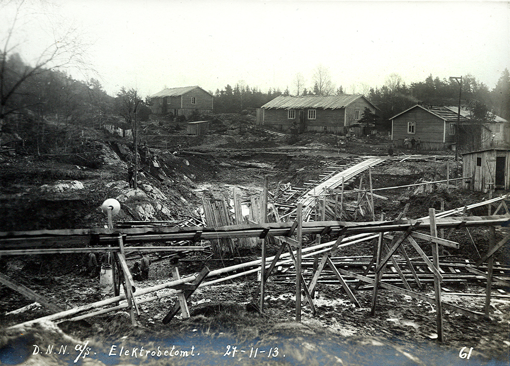 Nitriden. Grunnarbeider for materiallager, mekanisk verksted, snekkerverksted og administrasjonskontorer. Foto: Løvfold, 18.7.1913. Stort bilde
