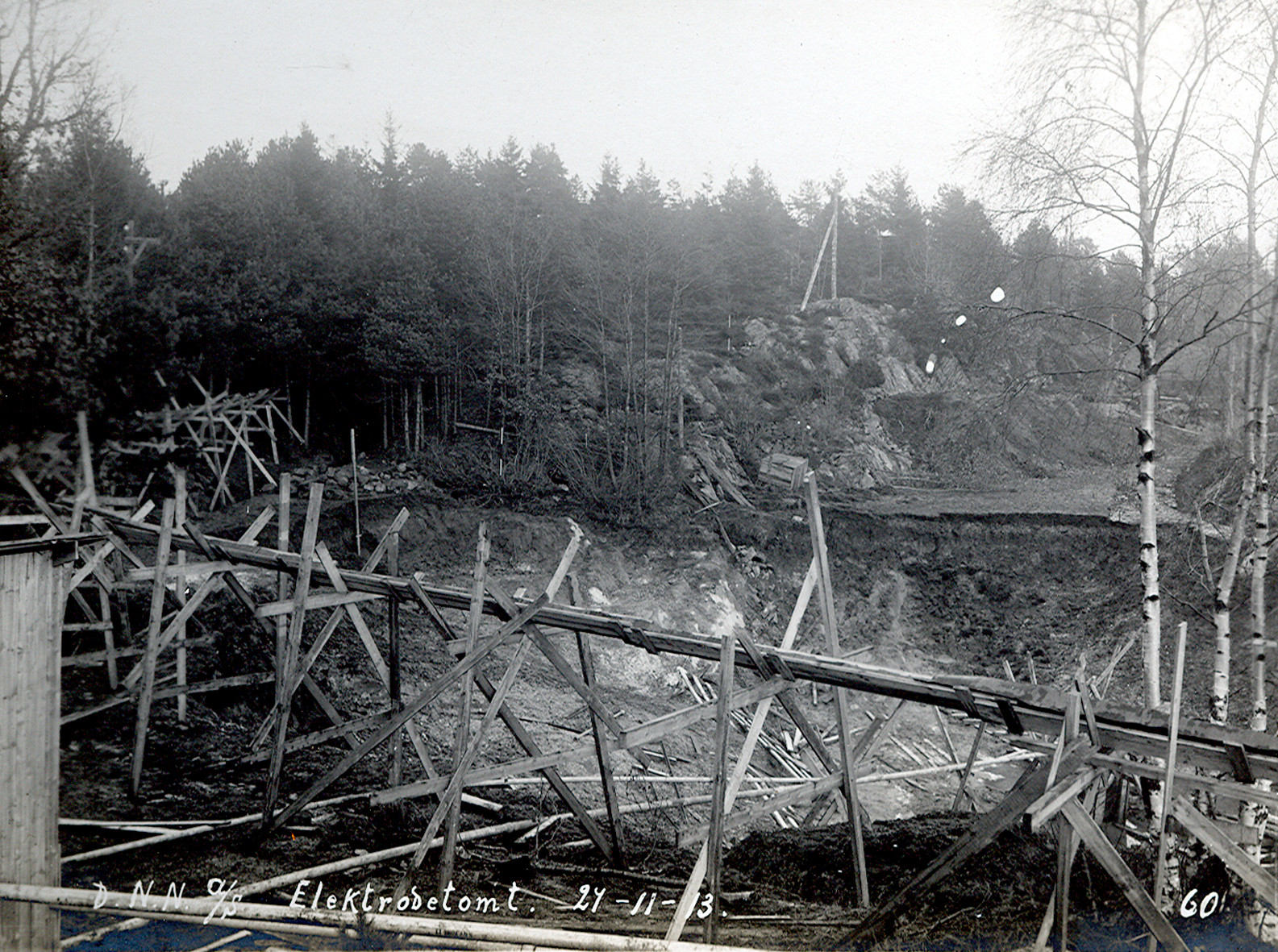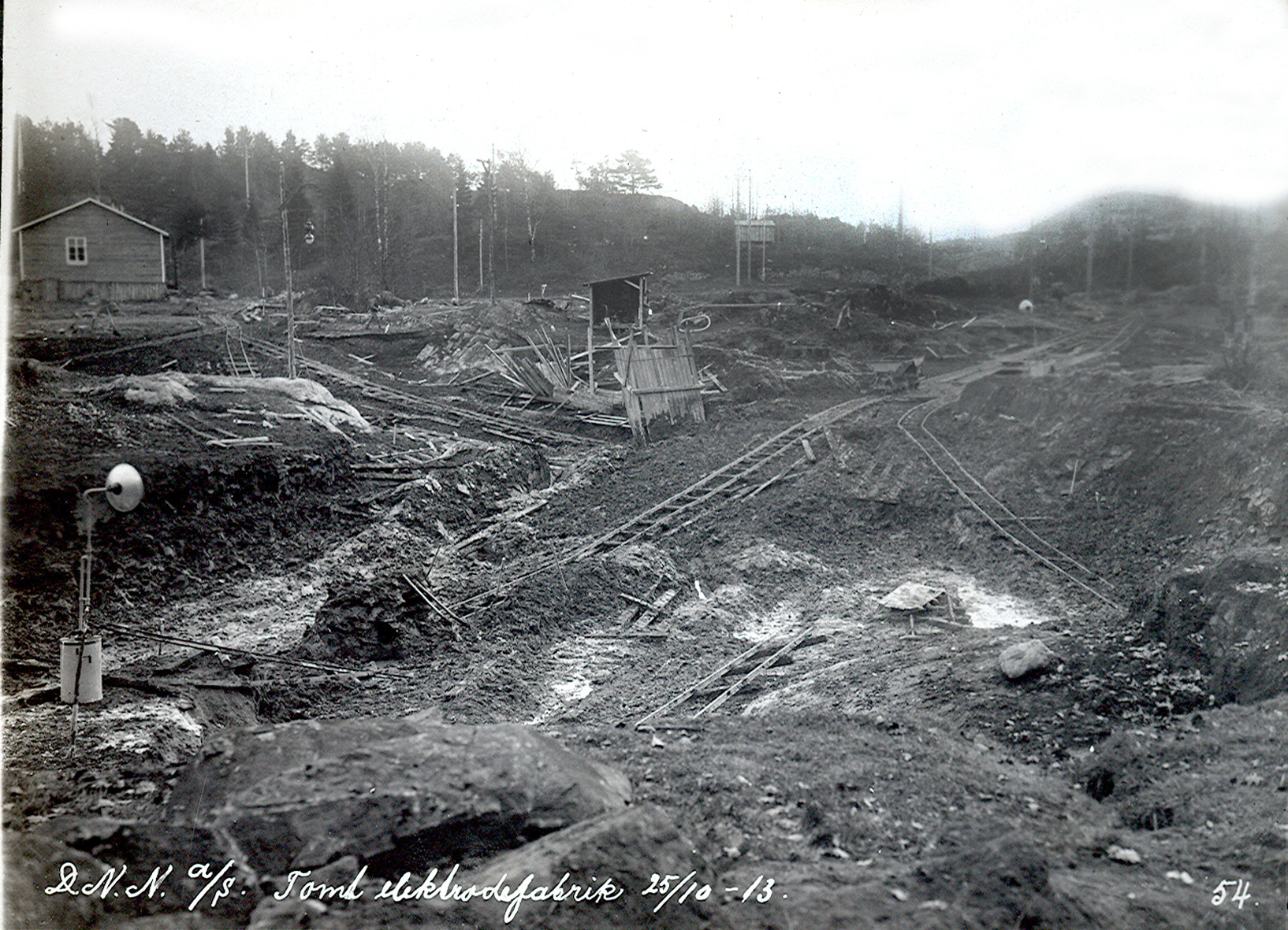 Nitriden. Tomt elektrodefabrikken. Foto: Løvfold, 27.11.1913. Stort bilde