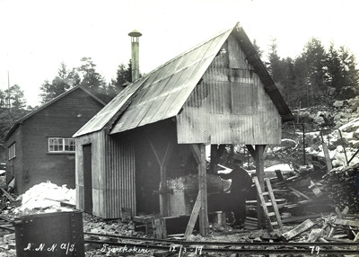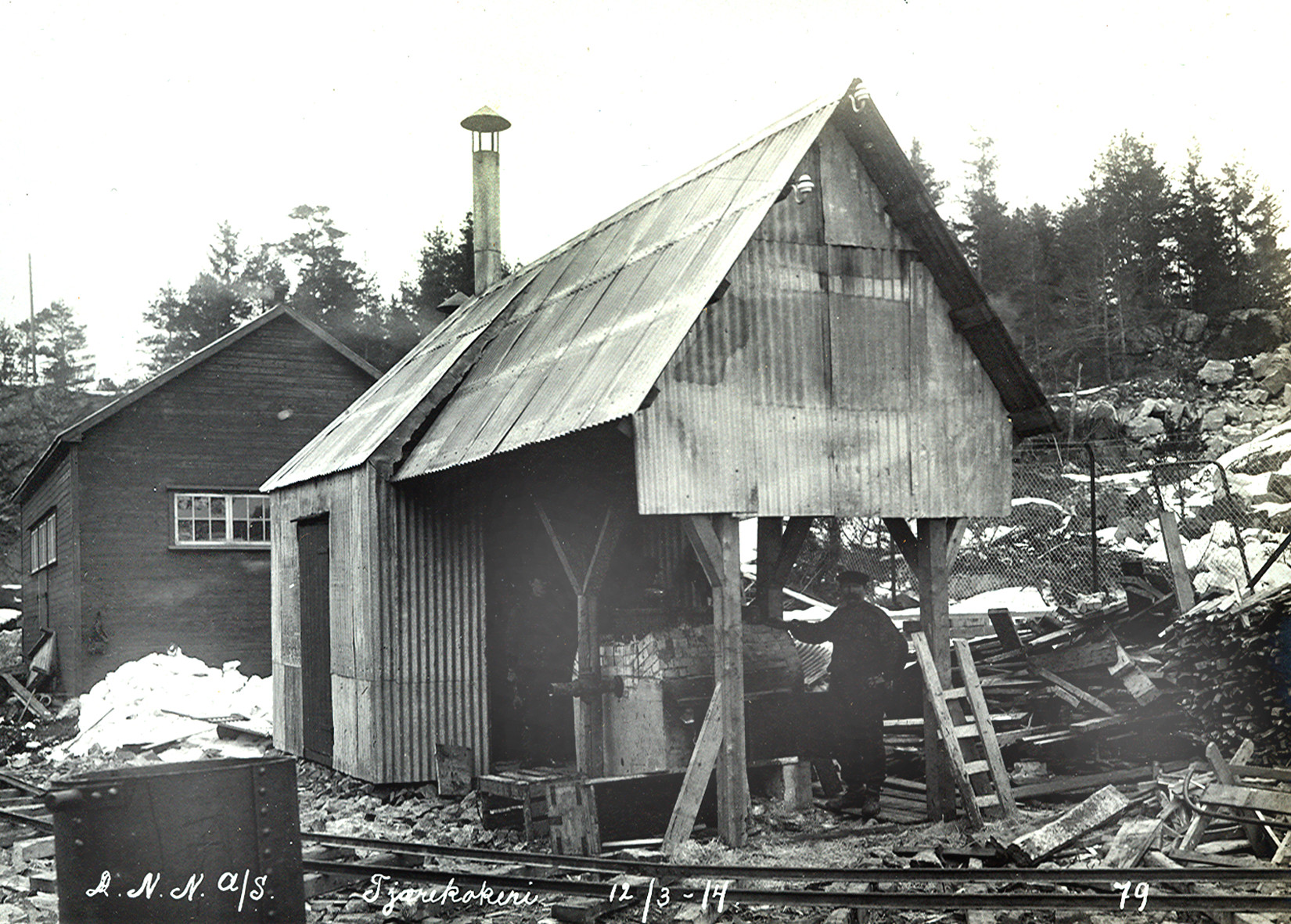 Nitriden. Tjærekokeri. Foto: Løvfold, 12.3.1914. Stort bilde