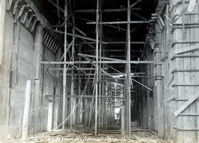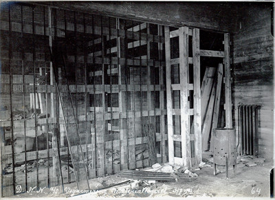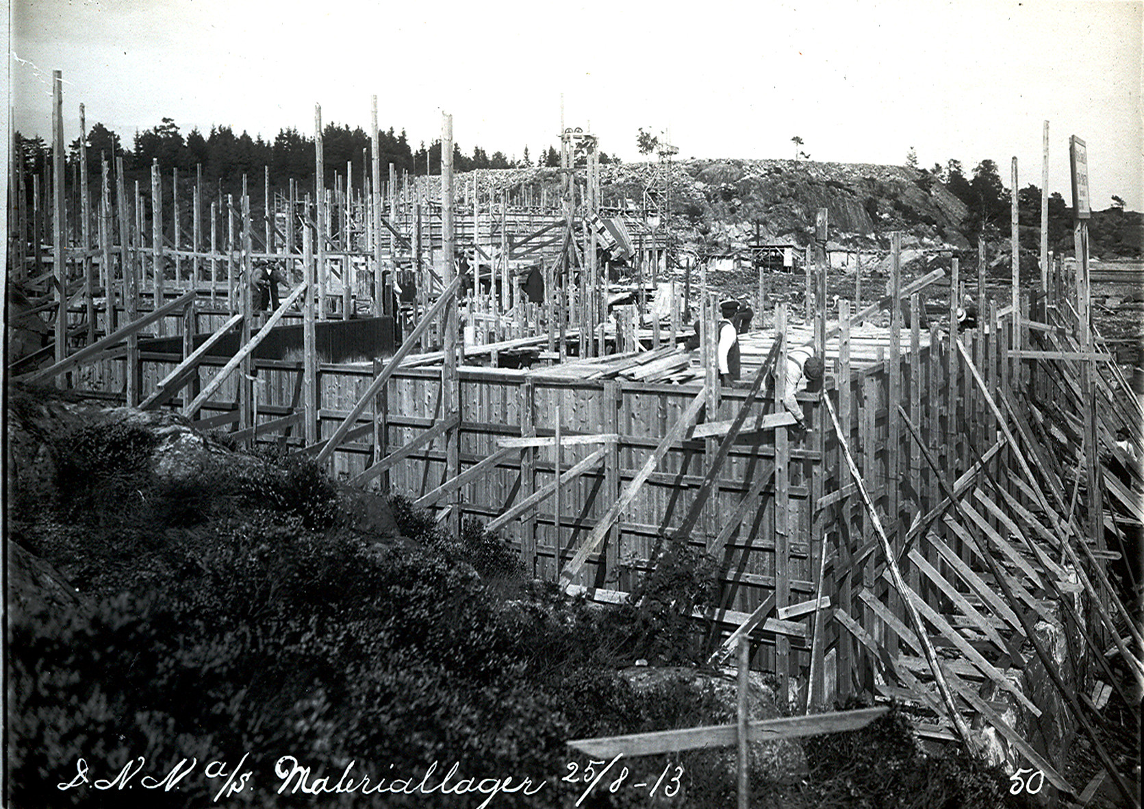 Nitriden. Materiallageret, ete. Armering av vegger. . Foto: Løvfold, 3.1.1914. Stort bilde