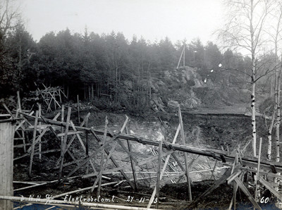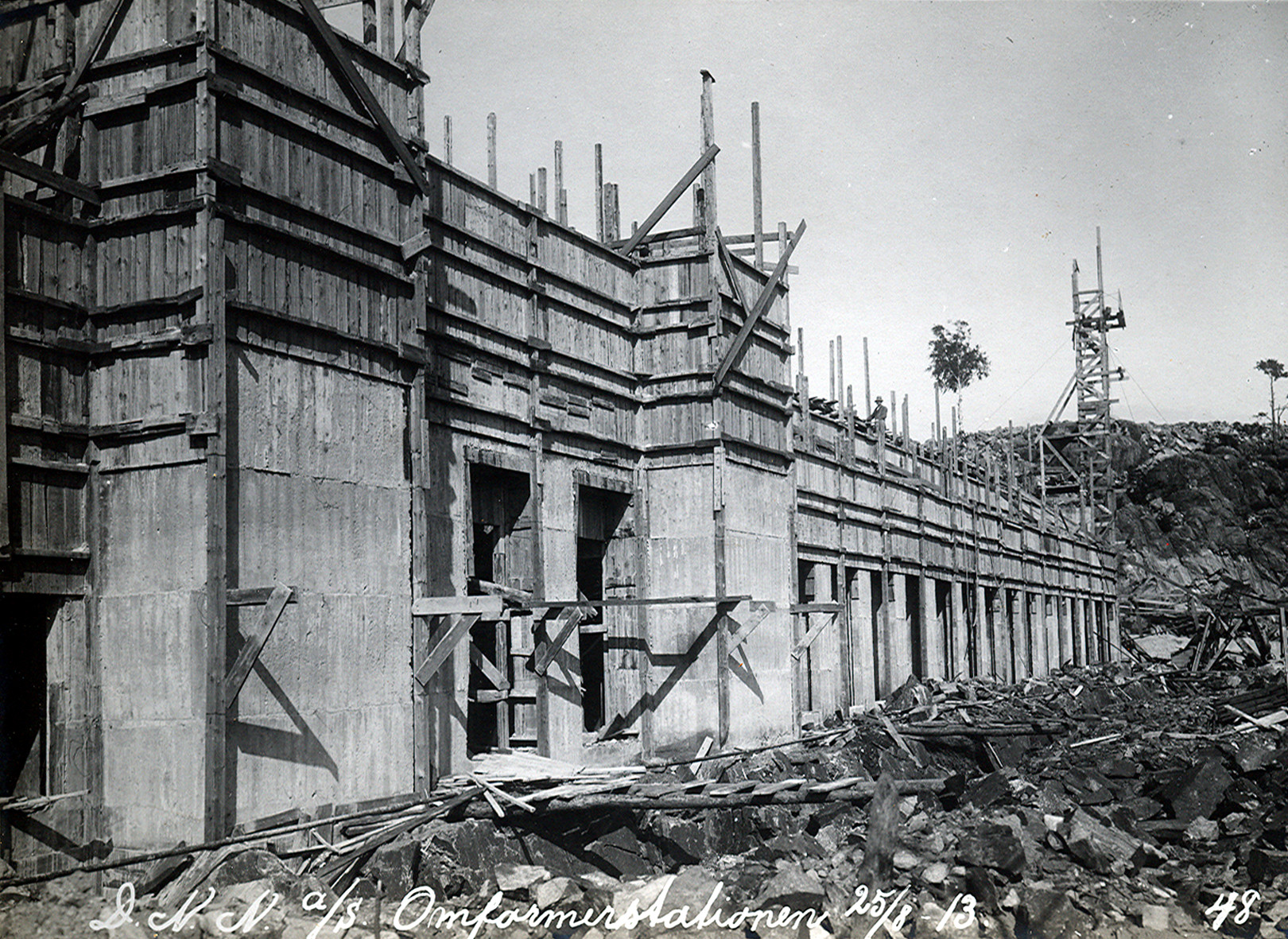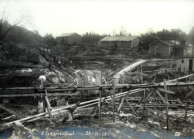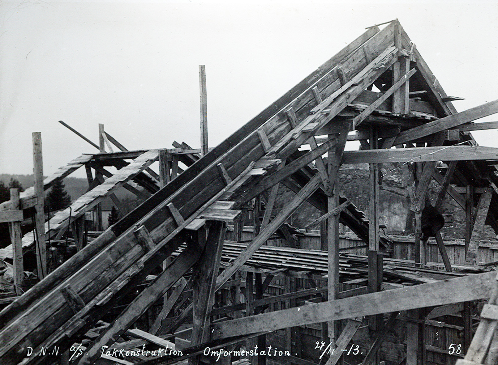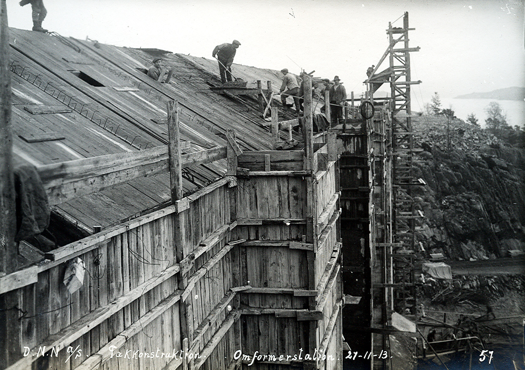 Nitriden. Forskalinger for takkonstruksjon på omformerstasjonen. Foto: Løvfold, 27.11.1913. Stort bilde