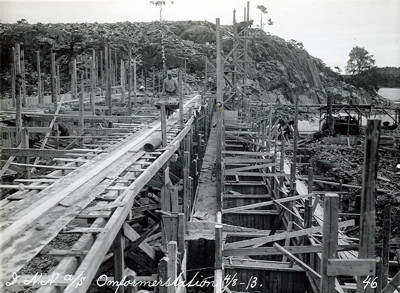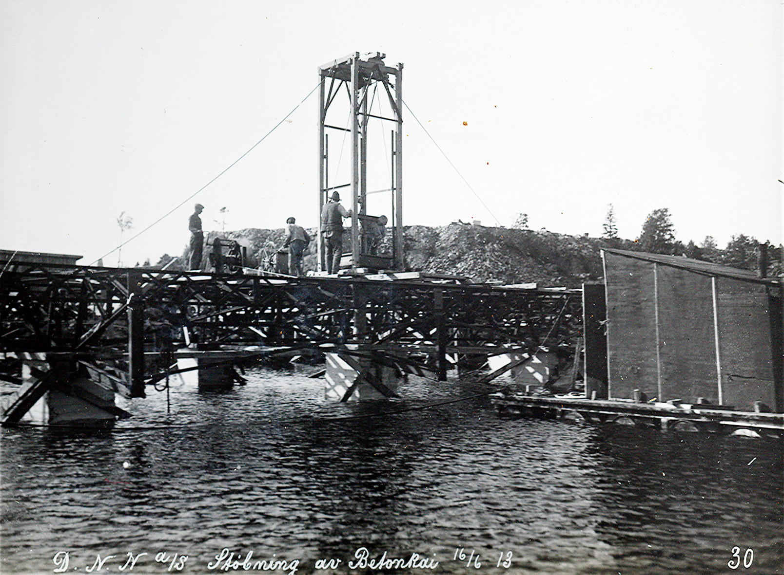 Nitriden. Støping av betongkai. Forskalingsteknikk. Heisanordning. Løvfold, 16.6.1913. Stort bilde