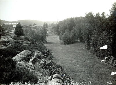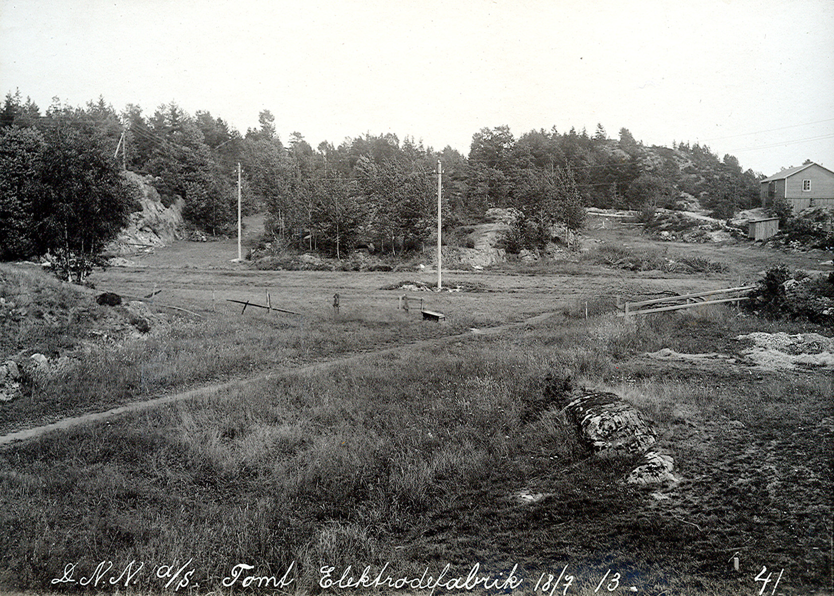 Nitriden. Tomt for elektrodefabrikken. Jordene var dyrket mark før bedriften kom. Foto: Løvfold, 18.7.1913. Stort bilde