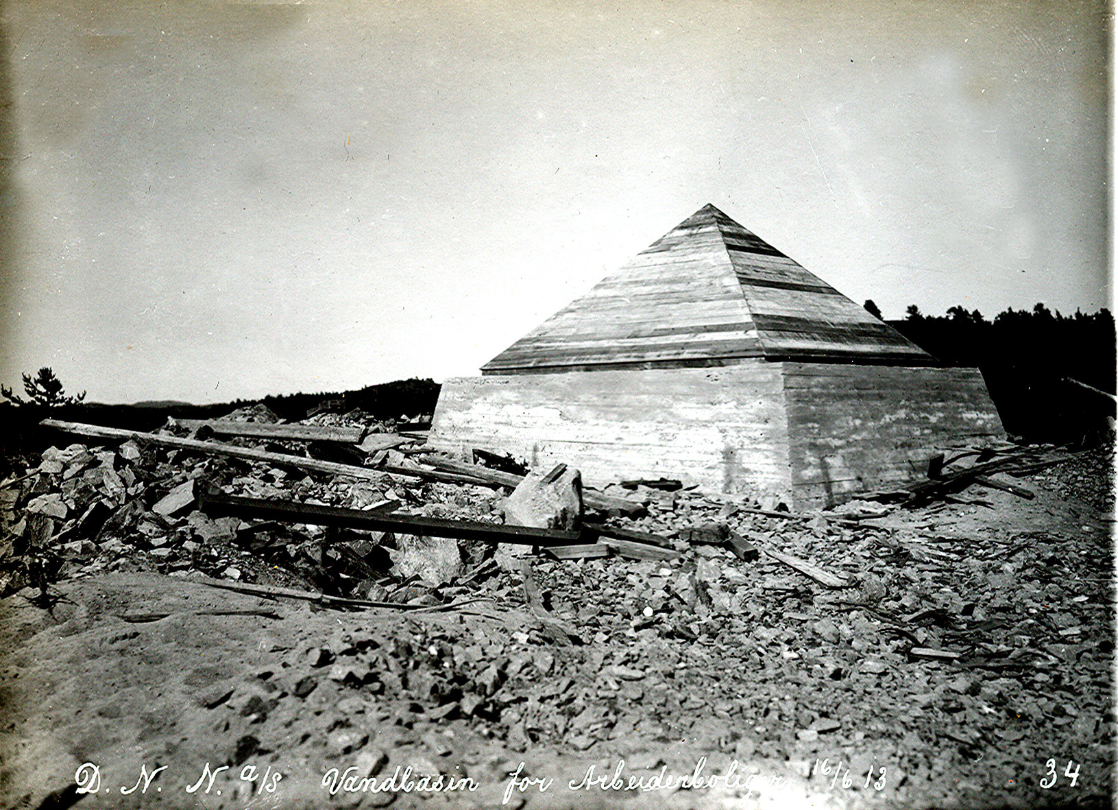 Eydehavn. Vannbasseng. Trykkvannsforsyning for arbeiderboliger i Nesgaten. Foto: Løvfold, 16.6.1913. Stort bilde