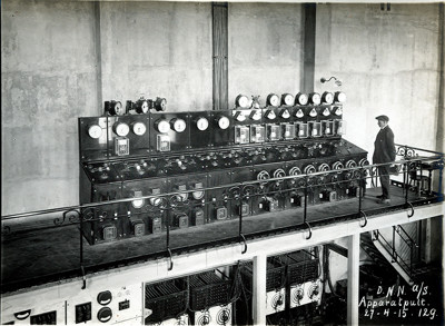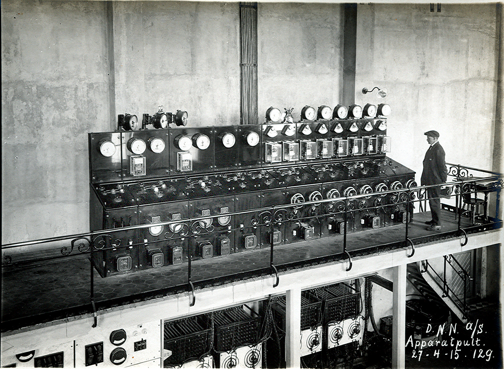 Nitriden. Omformerstasjonen. Apparatpult (”brettet”). Foto: Løvfold, 27.4.1915. Stort bilde