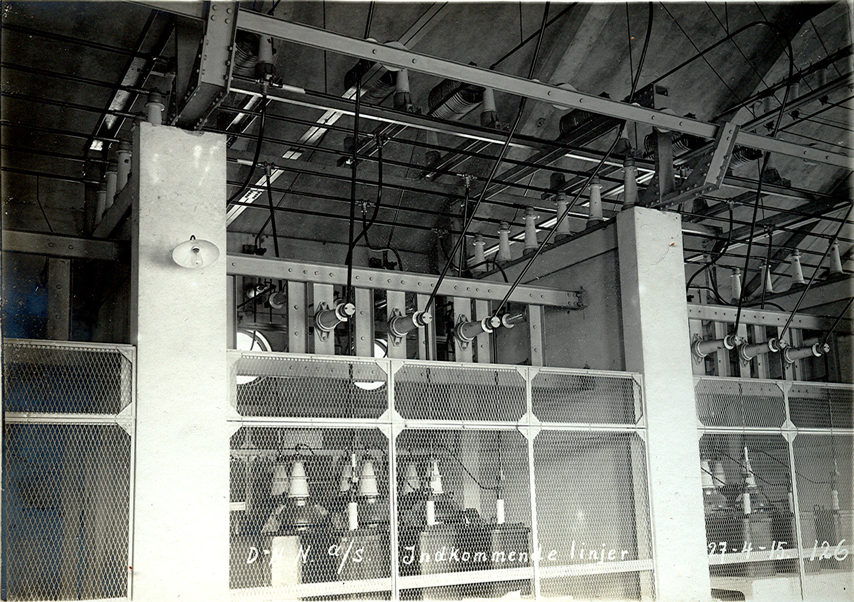 Nitriden. Omformerstasjonen. Arrangement for innkommende linjer fra kraftstasjonen. Foto: Løvfold, 27.4.1915. Stort bilde