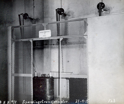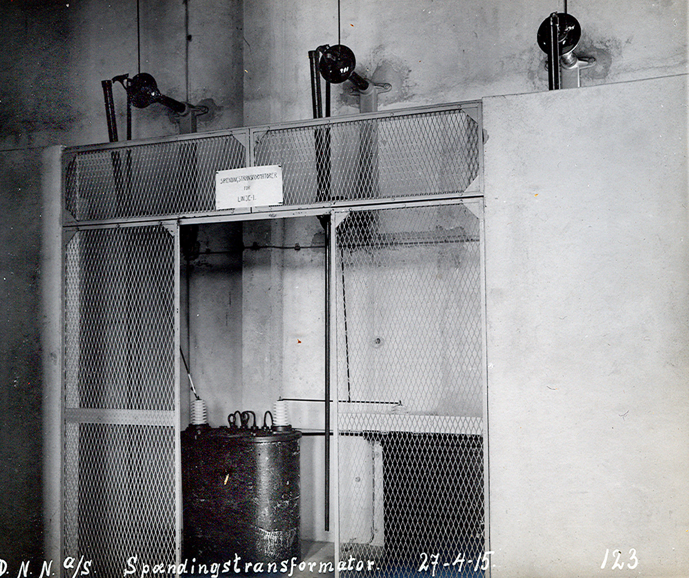 Nitriden. Omformerstasjonen. Spenningstransformator. Foto: Løvfold, 27.4.1915. Stort bilde