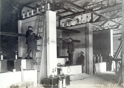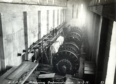 Nitriden. Montering av maskineri i omformerstasjonen. Foto: Løvfold, 14.3.1914. Stort bilde