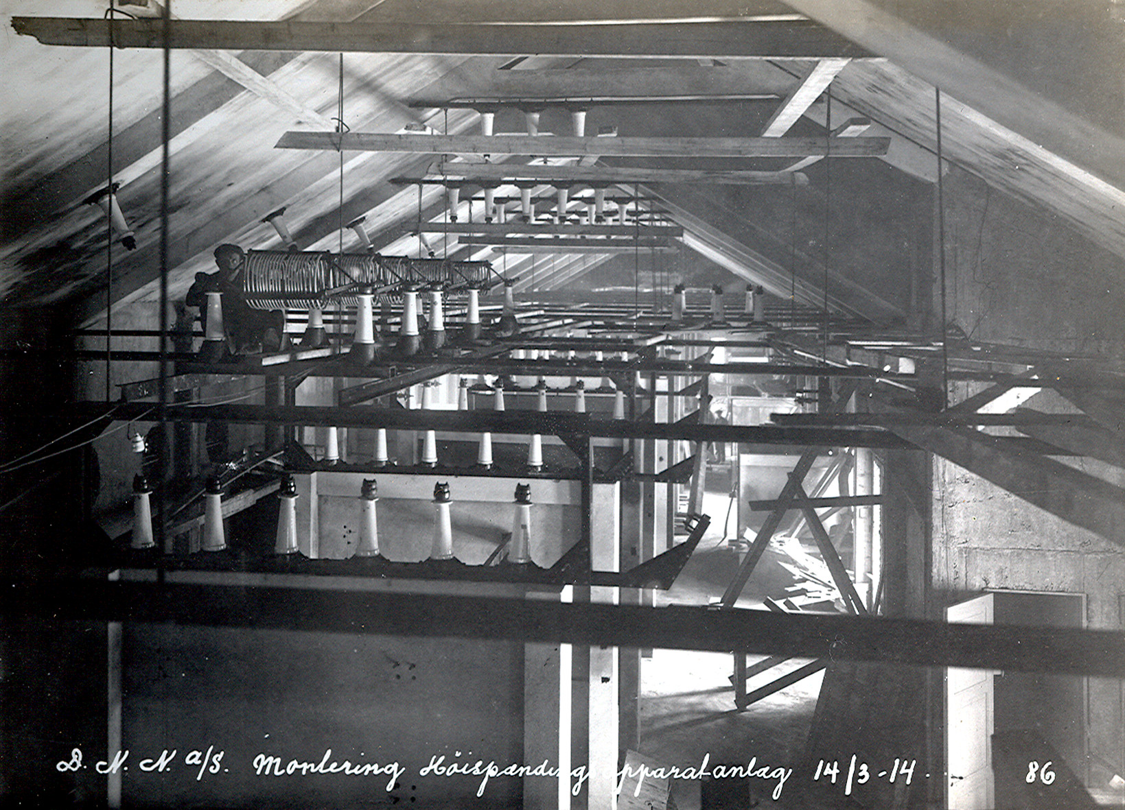Nitriden. Montering av høyspentanlegg. Foto: Løvfold, 14.3.1914. Stort bilde