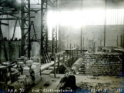 Nitriden. Elektrodefabrikken. Ovner. Foto: Løvfold, 27.4.1915. Stort bilde