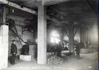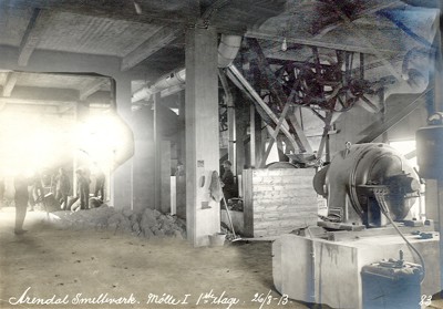 Smelteverket. Interiør. Foto: Løvfold, 1913. Stort bilde