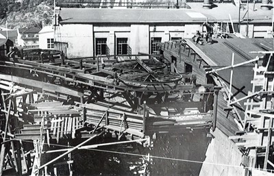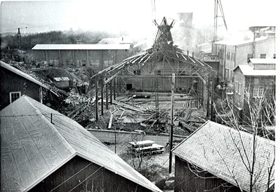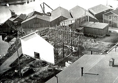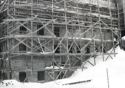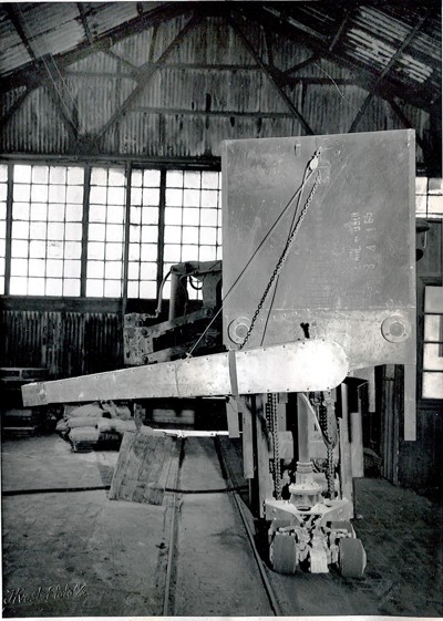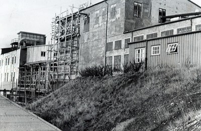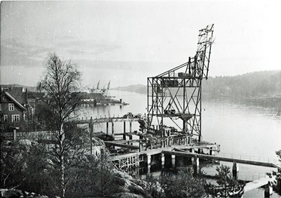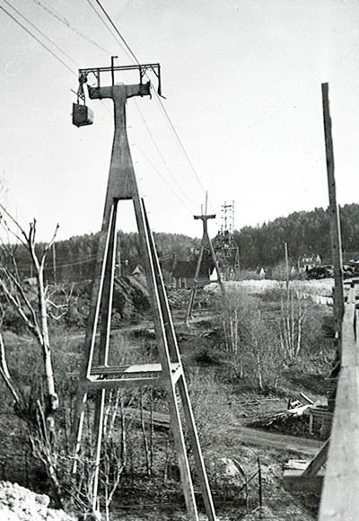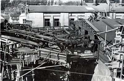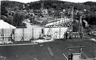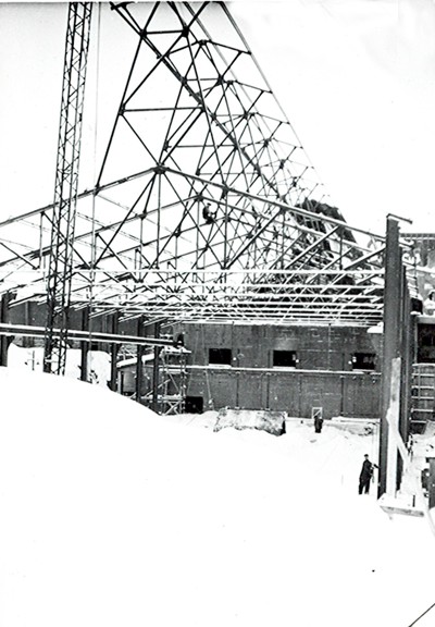 Smelteverket. Ombygging taubane/silo. Foto: Thorleif Wimme, 1956. Stort bilde