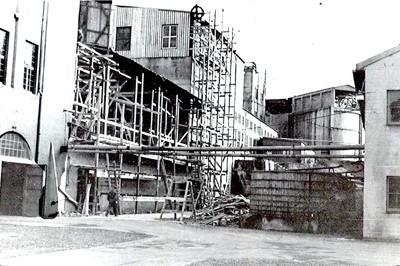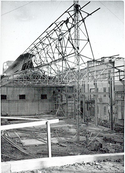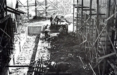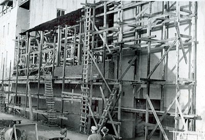 Smelteverket. Ombygging Ovnshus II til Ra-SIKA- siloer. Foto: Thorleif Wimme, 1954. Stort bilde