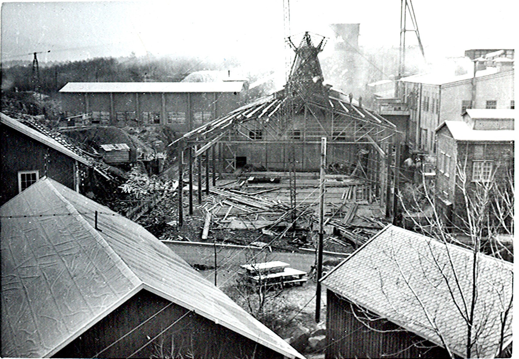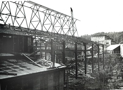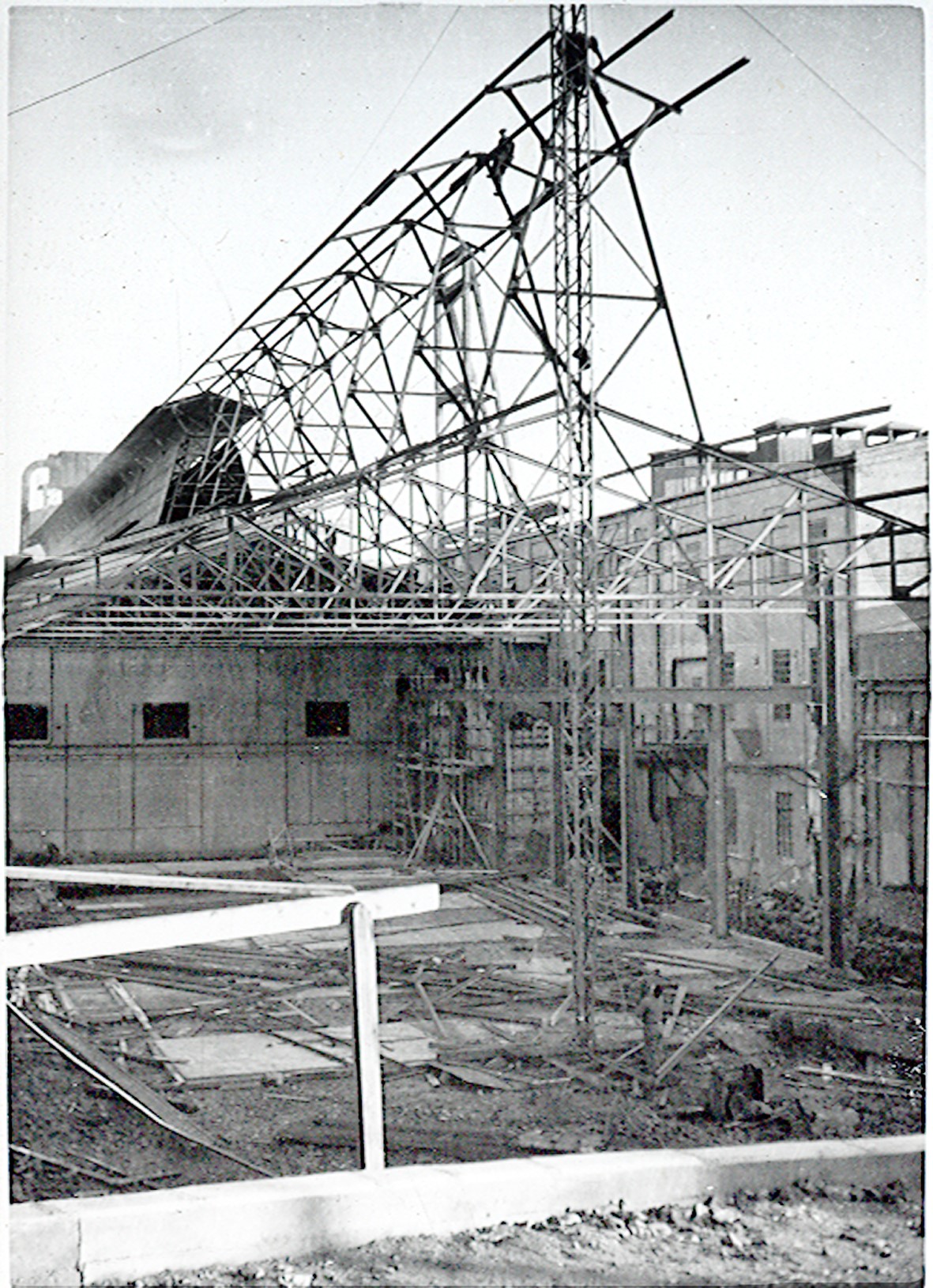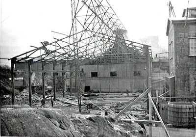 Smelteverket. Ombygging av taubane/silo. Foto: Thorleif Wimme, 1956. Stort bilde