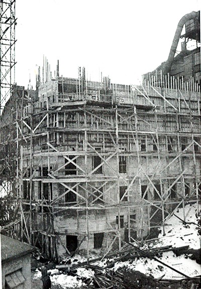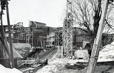 Smelteverket. Pabygging av Mælle I og Blanderi A. Foto: Ukjent. Stort bilde