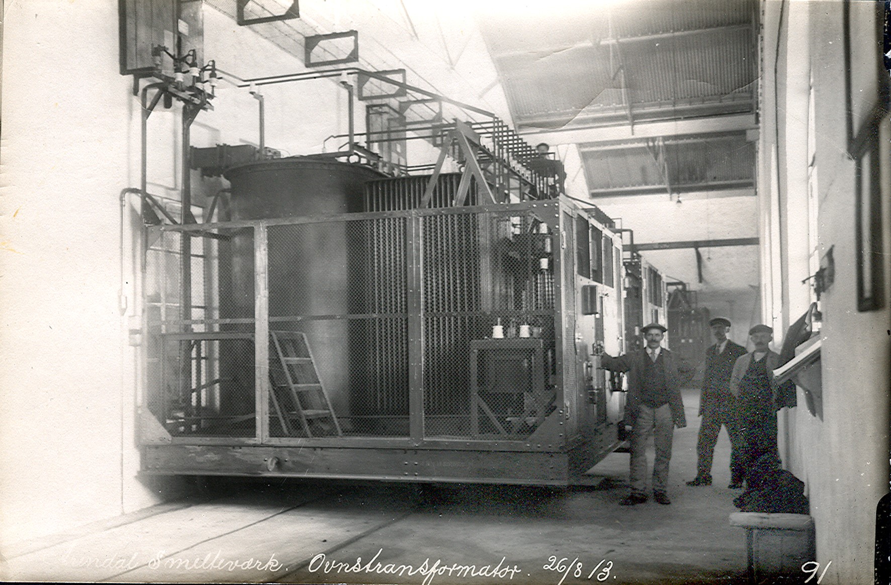 Smelteverket. Transformatorrommet. Ovnstransformatorer. Foto: Løvfold, 1913. Stort bilde